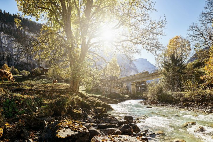 Lauterbrunnen is perfectly placed for many of the Jungfrau region's top attractions. One of the highlights of your holiday will be to visit the Trümmelbach Falls. A short bus ride from the village brings you to the visitor centre with its viewing platforms over the thundering waters. Take the mountain railway up to Wengen and then onwards to Kleine Scheidegg for fabulous walks and connections to the Jungfraujoch-Top of Europe. From Kleine Scheidegg you can also travel down to Grindelwald which lies at the foot of the Eiger. Männlichen is another good walking area.