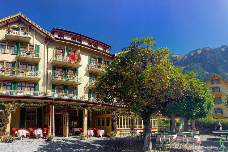 Established in 1895, the Falken is today run by descendants of the original family. The hotel exudes historical charm and is conveniently located in the centre of the village so you may easily walk to the railway station, shops and the cable car. You’ll step back into the 19th century in the atmospheric dining room: your buffet breakfast is served amongst the original furniture and chandeliers, as well as the four course evening meal. During warm summer evenings, dinner can also be taken in the garden, with its view of the Jungfrau mountain and Lauterbrunnen Valley. After dinner you may like to relax in the intimate bar where you can enjoy mountain views along with your drink, or the adjacent piano room - both are popular with locals for a quiet drink. The comfortable rooms are furnished in a traditional alpine style. The von Allmen-Cova family look forward to welcoming you to their charming hotel.