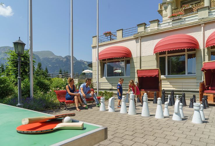Find an oasis of peace in the stylish wellness area, with a panoramic relaxation room with Jungfrau view. There is a fitness suite, an indoor pool, and in the spa area a sauna and steam room. One of the highlights is the outdoor whirlpool: relax with an unobstructed view of the beautiful Lauterbrunnen Valley.