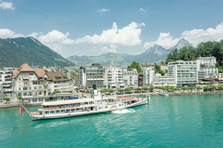 This small and friendly hotel occupies a superb position on the shore of the lake and has outstanding views to the high Alps and across to the Rütli Meadow, birthplace of the Swiss nation. The hotel comprises two separate buildings: the carefully restored Schmid which has a 130 year history of welcoming guests, and the more modern Alfa building. Please note that the Alfa has a number of steps to reach to the entrance (with a ramp at the back of the hotel). Breakfast is a comprehensive buffet including a glass of Prosecco; for guests staying in the Alfa building, it is served in a separate breakfast room overlooking the lake. The Haddock restaurant specialises in seafood and tapas and is situated between the two buildings. Owned by the same family, the restaurant will be pleased to serve you from their à la carte menu.