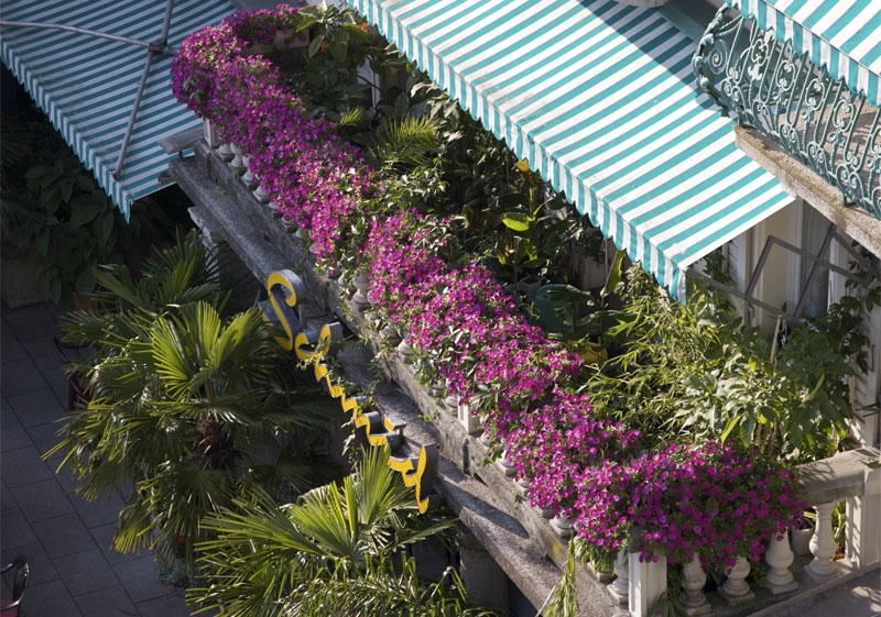 The sunny garden terrace, complete with palm trees, is perfect for relaxing with a drink after your day exploring the lake or the surrounding mountains.