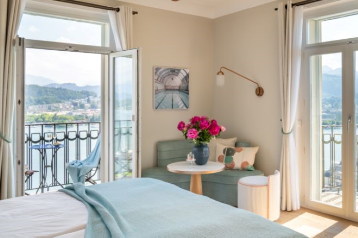 The Art Deco Hotel Montana has unbeatable views, with its elevated position which overlooks the town, the lake and the central Alps. The hotel is well situated right in the heart of Lucerne and guests can walk to the historic centre within 10 minutes or take a short bus ride. The hotel even has its own private funicular to transport you between the lakeside and Reception. This is a fabulous hotel in which to indulge yourself, starting with dinner in the Scala restaurant, which is recognised with 15 points in the esteemed Gault & Millau guide. The restaurant and its terrace have fabulous views, as does the Louis jazz bar which features smooth live music and over 130 varieties of malt whisky. You could also savour a drink in the atmospheric Hemingway Rum Lounge or sip cocktails in the stylish Beach Club rooftop bar. The Day Spa continues the art deco styling and has a wide range of beauty treatments and massages. We highly recommend this elegant hotel.