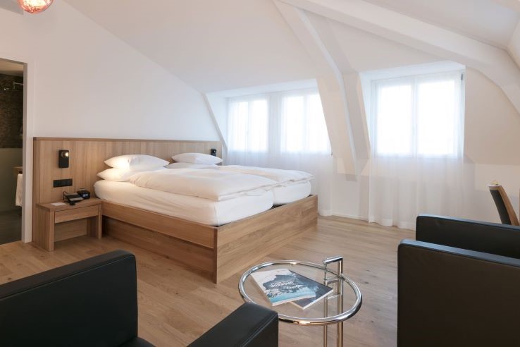 The hotel is furnished with simple but elegant materials. Facilities here include a light and airy breakfast room and a welcoming bar - perfect for drinks after a day exploring the region. While hotel does not have a restaurant, there are plenty nearby and reception staff will be only to pleased to make a recommendation for your evening meal. There is also a small wellness area with relaxation loungers, a sauna and a steam bath.