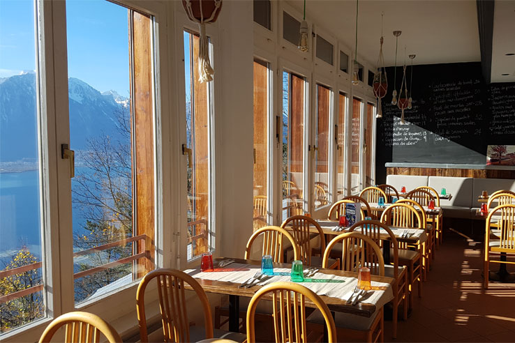 On arrival at Glion station, you will immediately see the Buffet de la Gare. This amazing restaurant offers a warm welcome and prides itself on using very local produce for its dishes. The fish comes from Lake Geneva, the meat and vegetables from the village of Puidoux, the bread from a bakery in Chernex, the fresh pasta is made in Montreux and the cheeses come from farms all over the Lake Geneva region. Most of the wine comes from the Lavaux Vineyard Terraces. There are spectacular views over the lake! Open for lunch and dinner Thursday-Monday.