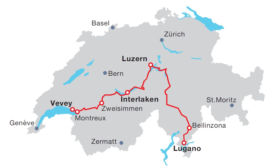Your holiday includes a Swiss Travel Pass, covering the rail journeys below as well as many scenic excursions