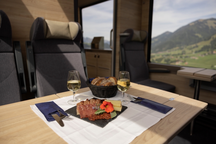 at-seat catering service is available and should be booked in advance. This comprises a choice of packages using local products, including platters from the Bernese Oberland, some Swiss Caviar and breakfast boxes from local producers. Drinks include wine from the Lavaux vineyards near Montreux and beer from Interlaken.Â