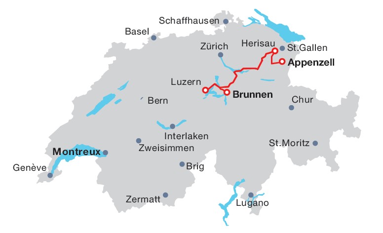 Leave the delights of Brunnen to reach Lucerne and there embark on this appealing journey on board the Voralpen Express. You’ll cross Lake Zurich to Rapperswil and enjoy the rolling hills and pristine villages en route to Herisau. Change here to the charming local line to Appenzell for the last 30 minutes of your journey. Appenzell is a great favourite of the Swiss but yet to be discovered by the UK!