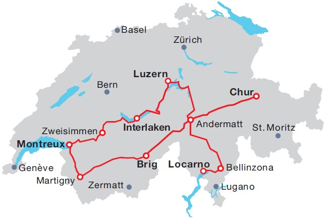 Your holiday includes a Swiss Travel Pass, covering the rail journeys below as well as many scenic excursions