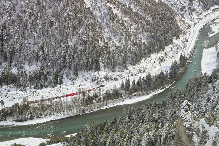 Dramatic winter scenes & spectacular rail journeys crossing Switzerland’s high Alps in style